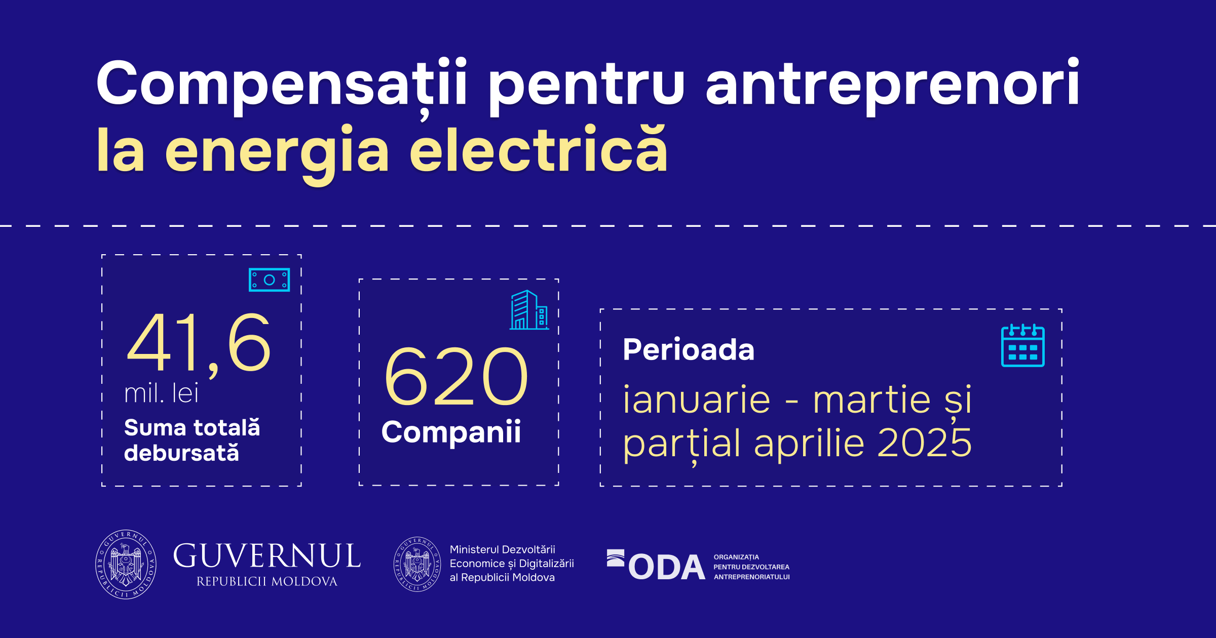 Banii au fost transferați treptat și vizează consumul din lunile ianuarie, februarie, martie și parțial aprilie 2025.Recent, Organizația pentru Dezvoltarea Antreprenoriatului a transferat o nouă tranșă de 17,1 milioane de lei, aferentă consumului de energie din a doua jumătate a lunii martie și începutul lunii aprilie.